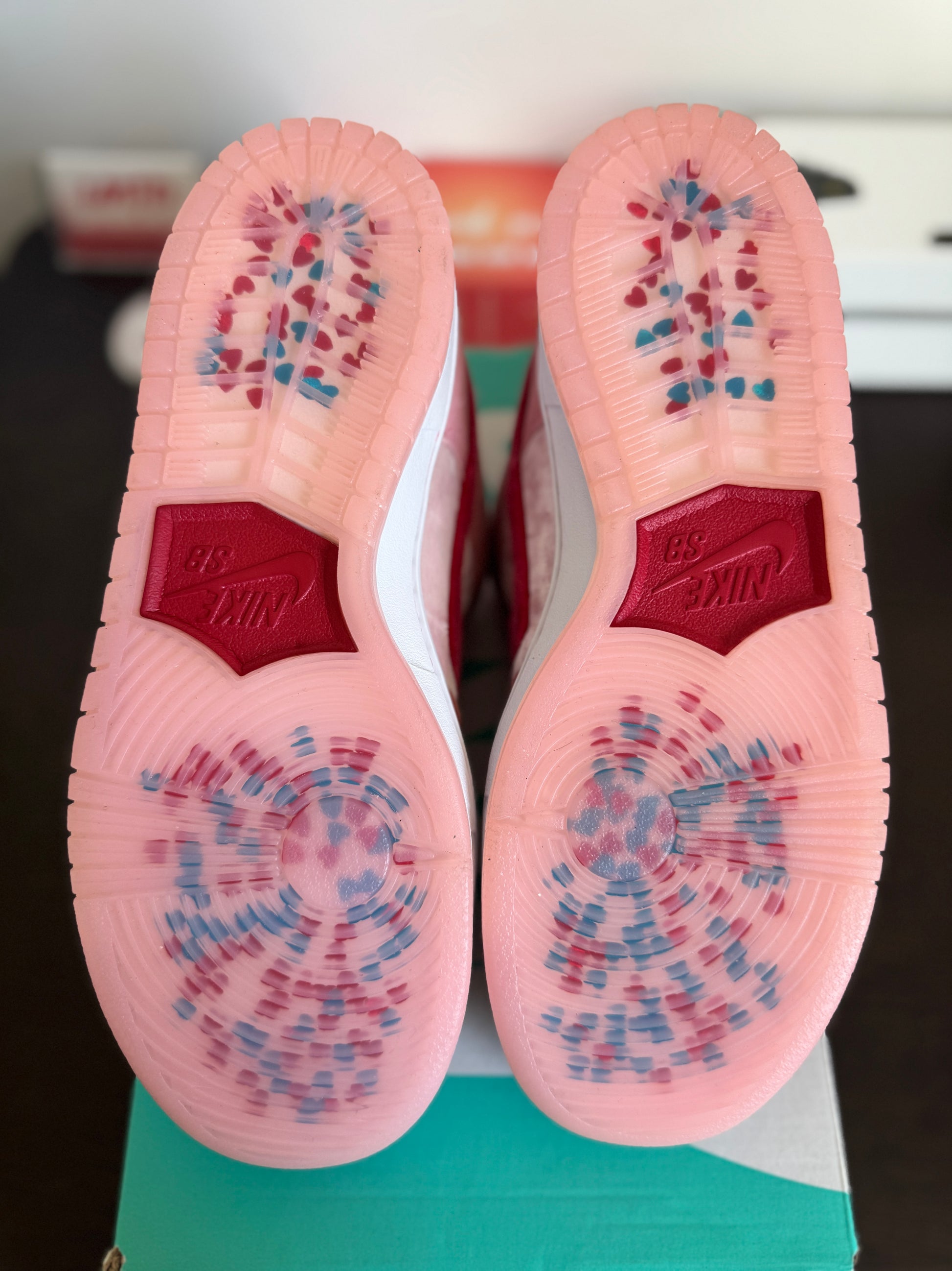 The Nike SB Dunk Low 'Strangelove' is a playful and unique take on the iconic Dunk silhouette, created in collaboration with Strangelove Skateboards. This special edition sneaker blends skate culture with an eye-catching aesthetic, making it a standout piece for both skaters and sneaker enthusiasts alike.